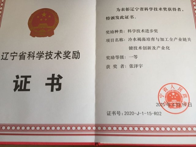 “冷水褐藻培育与加工全产业链关键技术创新及产业化”获辽宁省科学技术一等奖