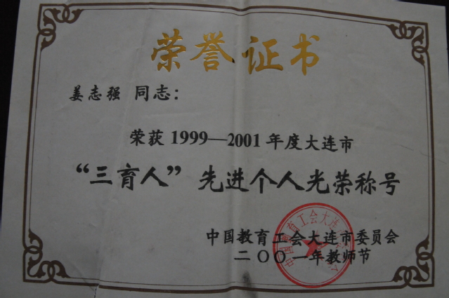 姜志强教授荣获中国教育工会大连市委员会“三育人”先进个人光荣称号