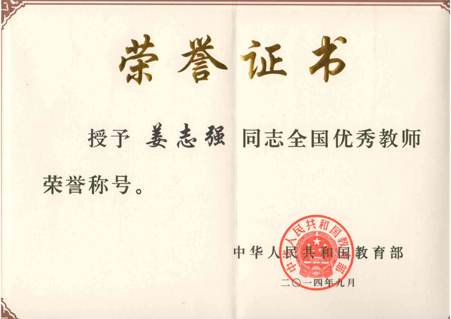 姜志强教授获全国优秀教师荣誉称号