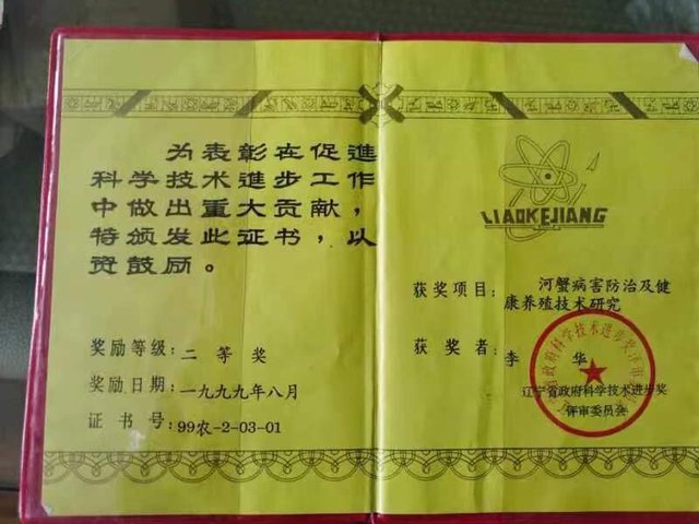 “河蟹病害防治及健康养殖技术研究”获辽宁省科技进步二等奖