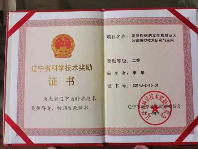 “刺身疾病的发生机制及无公害防控技术研究与应用”获辽宁省科学技术二等奖