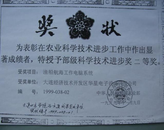 “渔船航海工作电脑系统”获农业部科学技术进步二等奖