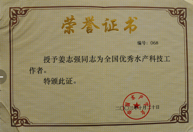 姜志强教授被中国水产学会授予全国优秀水产科技工作者