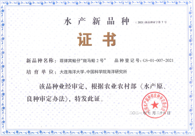 菲律宾蛤仔“斑马蛤2号”通过水产新品种审定