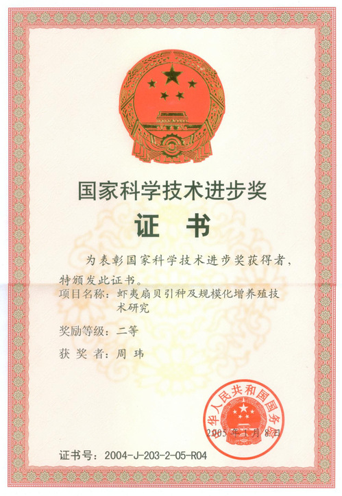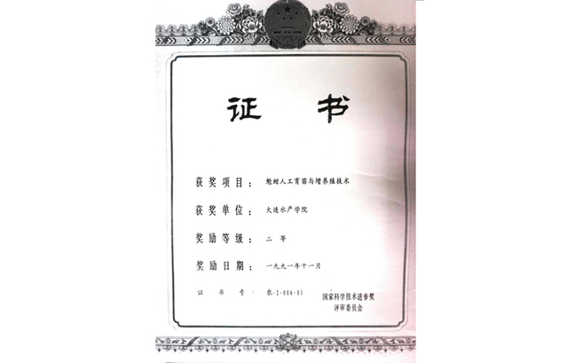 “美国硬壳蛤的引种、人工育苗及养殖”获辽宁省科学技术二等奖