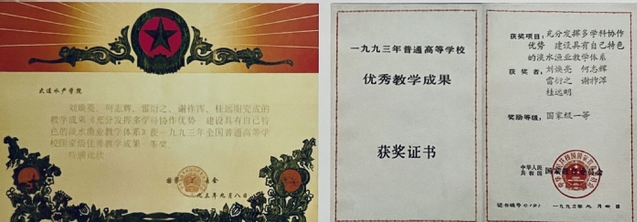 “充分发挥多学科协作优势 建设具有自己特色的淡水渔业教学体系”获国家教育委员会优秀教学成果国家级一等奖