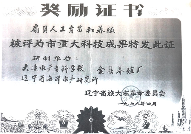 “扇贝人工育苗和养殖”获全国科学大会奖