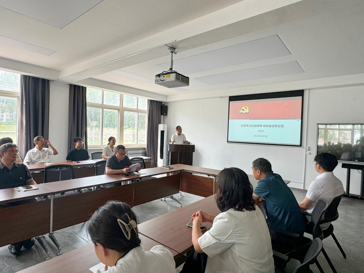 9月3日,葡京娱乐APP官网 党委书记刘宪杰以“弘扬伟大抗战精神,砥砺奋进新征程”为题,讲授专题党课。葡京娱乐APP 领导班子成员、全体教职工党员以及学生党员代表参加了专题党课学习。