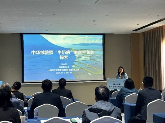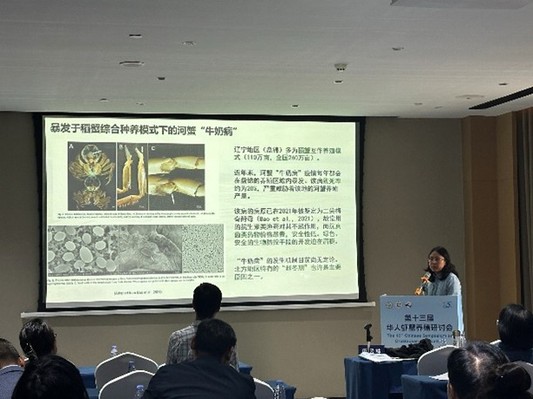 葡京娱乐APP 虾蟹增养殖创新团队李冰玉、黄姝两位教师受邀参会,并分别于健康养殖、加工与质量安全分会场和免疫与病害分会场,以《中华绒螯蟹“牛奶病”的防控策略探索》《中华绒螯蟹蜕壳过程中免疫应答的动态调控机制》为题作了学术报告。报告中,李冰玉老师系统阐述了“牛奶病”的发病特征、流行规律,初步分析了病害成因,并结合实验室多年研究实践,提出了综合防控技术方案。黄姝老师就中华绒螯蟹不同蜕壳阶段免疫相关基因的表达规律、免疫细胞活性变化及调控通路进行了阐明,探讨了蜕壳期免疫应答的动态平衡机制,为免疫增强剂研发,养殖管理策略的优化提供了理论支撑。两个报告引发了与会代表的广泛关注与交流讨论。