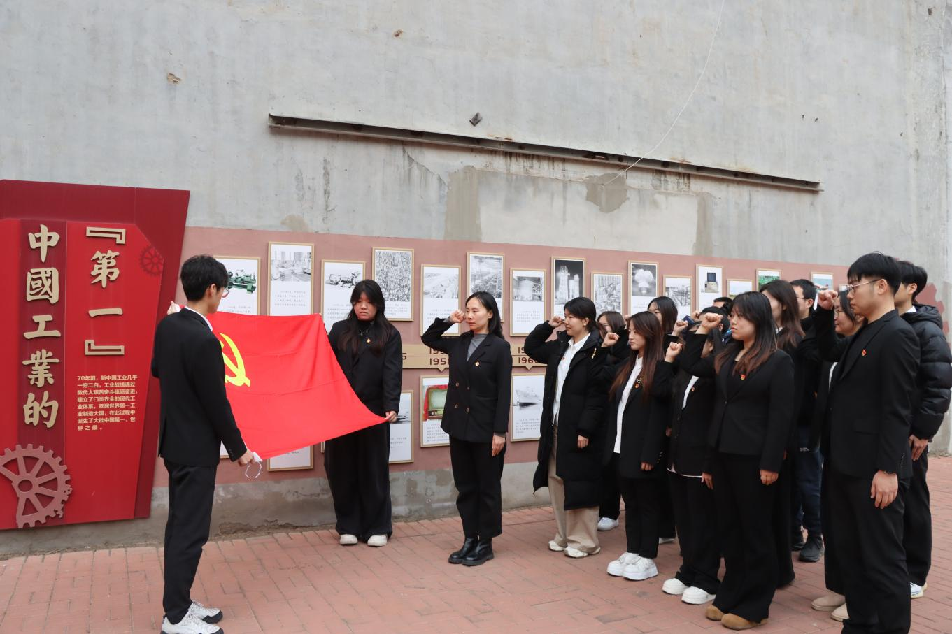 在冰山慧谷1930工业展览馆参观,馆内珍贵的历史展品与详实资料,生动还原工业发展峥嵘岁月,让大家深刻体悟老一辈建设者艰苦奋斗、锐意进取的精神内核。活动尾声,全体党员面向党旗庄严宣誓,铿锵誓言彰显青年党员坚守初心、勇担使命的坚定决心。