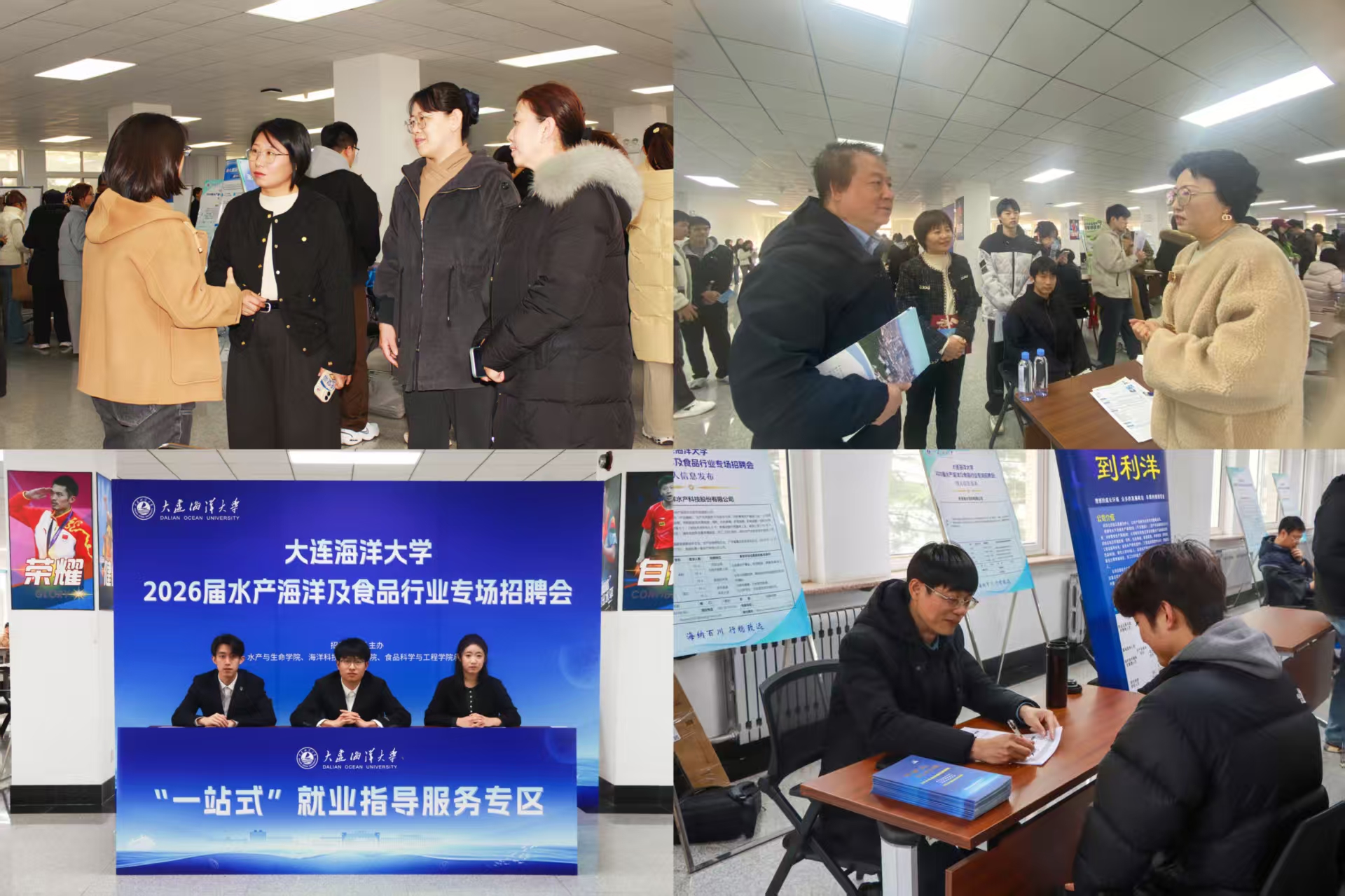 本次招聘会共吸引广东利洋水产股份有限公司、盘锦光合蟹业有限公司、江苏同瑞环保有限公司、大连瑞驰企业集团有限公司等47家行业优质企业参会,提供岗位500余个。岗位设置紧密结合学校相关葡京娱乐APP 专业特色与人才培养方向,涵盖了水产养殖、海洋科学、食品工程等多个领域。招聘会现场气氛热烈,学生积极与企业负责人沟通,围绕岗位要求、职业发展路径、实习培训机会等进行深入咨询,展现出良好的专业素养与求职热情。