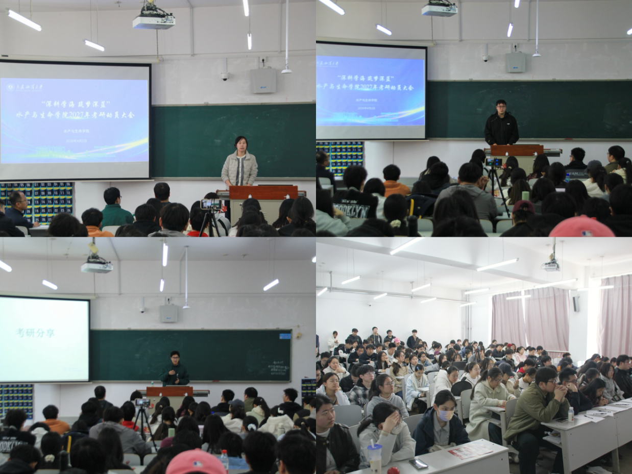 刘宪杰分析了近年考研形势与录取趋势,建议学生结合自身实力理性择校,尽早制定复习计划,并强调备考过程中坚持的重要性。王涛结合当前就业形势,鼓励学生立足专业、放眼未来,科学规划个人发展路径。会议指出,考研与就业并非对立选择,而是人生发展的不同路径,学生应根据自身实际理性抉择,早做准备、主动出击,在升学深造与职场实践中找准定位、实现价值。2022级水产养殖学专业占志伟、2022级水族科学与技术专业冯豫斌同学结合自身考研经历,围绕就业方向、学习安排与考研准备进行了细致分享,并针对同学们提出的跨考选择、考研数学准备等具体问题给予了务实建议。