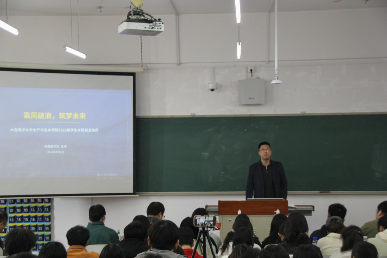 4月2日,葡京娱乐APP 在獐子岛教学楼132室召开以“深耕学海 筑梦深蓝”为主题的2027届考研、就业动员会。葡京娱乐APP 党委书记刘宪杰、党委副书记王涛出席会议。2022级考研“上岸”学生代表作经验分享,2023级全体本科生参加会议。