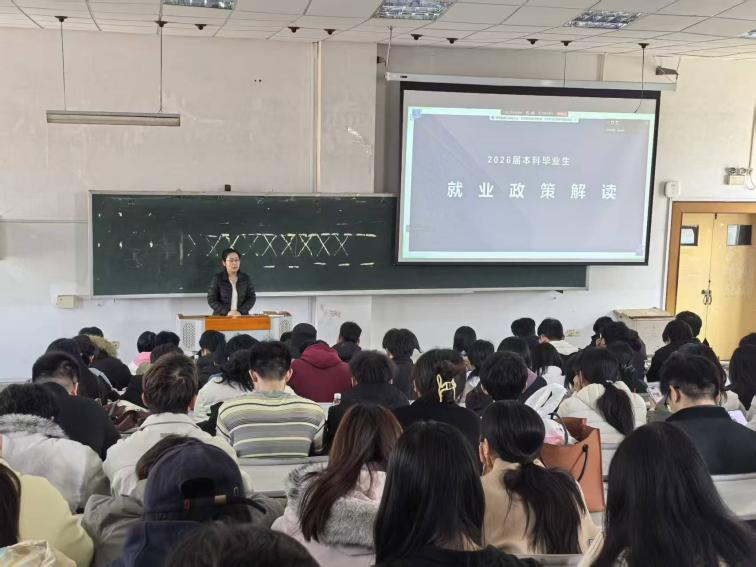 为扎实推进2026届本科毕业生各项工作,强化就业政策引导,筑牢校园安全防线,4月10日,葡京娱乐APP 在实验楼综阶3教室召开2026届本科毕业生年级大会暨就业政策解读会。本次会议采用线上线下相结合的方式,会议由毕业班辅导员李明静主持,全体本科毕业生参会。